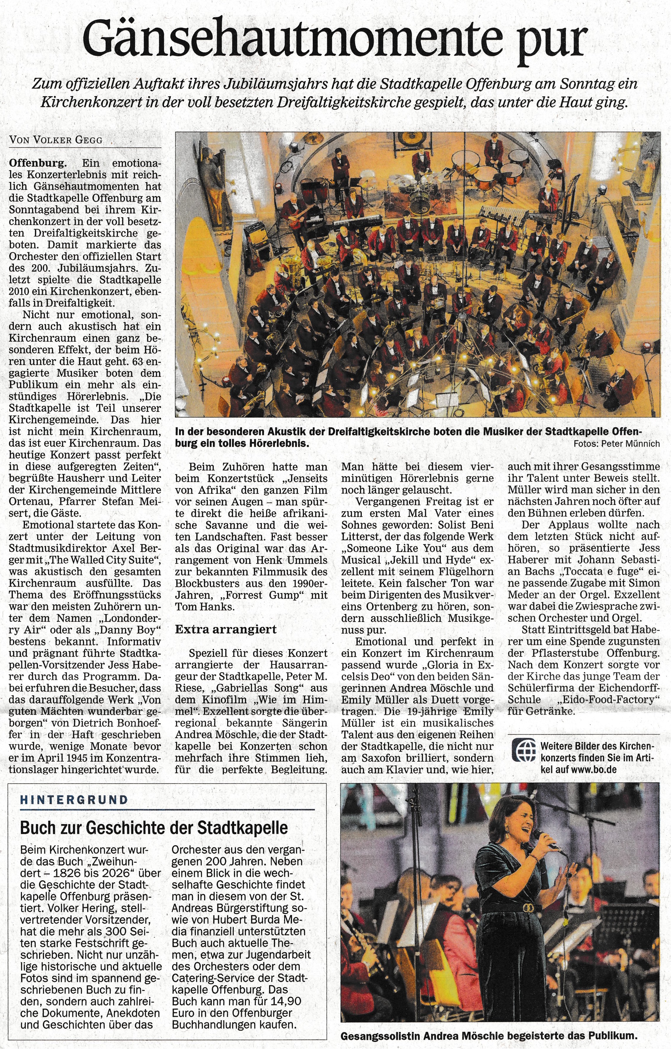 Mit einem Kirchenkonzert in der Dreifaltigkeitskirche eröffneten wir unsere Feierlichkeiten zum 200-jährigen Jubiläum. Über 700 Besucher waren unserer Einladung gefolgt und füllten die größte Offenburger Kirche bis auf den letzten Platz. Am Ende waren sie restlos begeistert.