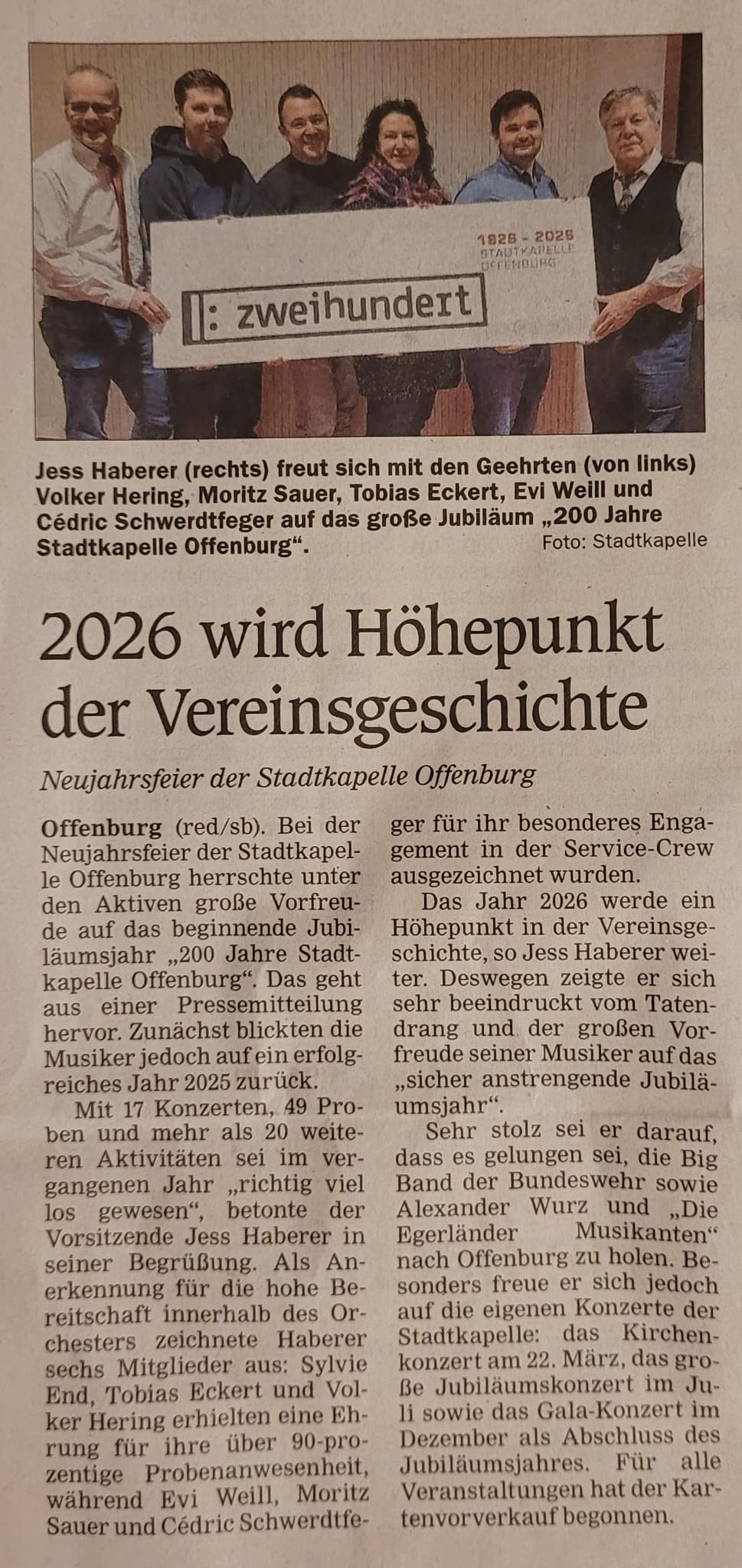 Bei unserer Neujahrsfeier der herrschte eine große Vorfreude auf das beginnende Jubiläumsjahr „200 Jahre Stadtkapelle Offenburg“. Zunächst blickten wir allerdings auf ein erfolgreiches Jahr 2025 zurück.
