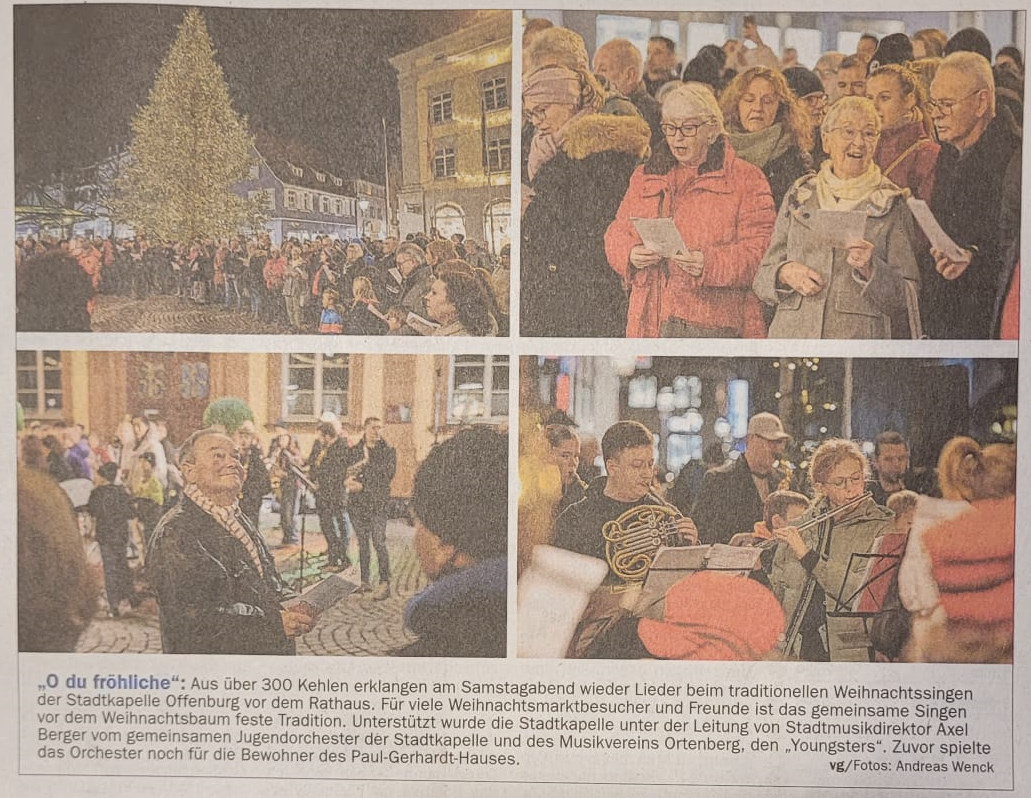 Über 300 Offenburgerinnen und Offenburger sind am 20. Dezember vor das Historische Rathaus gekommen, um mit uns zusammen Weinachtslieder zu singen.