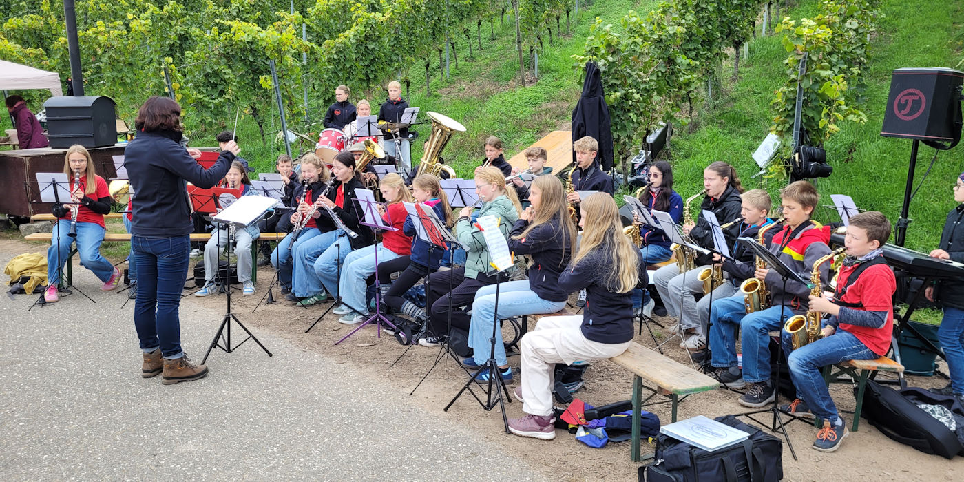 Unsere Youngsters gaben mitten in den Reben bei "Musik und Wein am Rosenstein", veranstaltet vom Musikverein Ortenberg, unter der Leitung von Barbara Frei ein kleines Konzert.